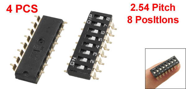 Dimension 2.6 x 1 x 1.2cm/ 1" x 0.4" x 0.5" (L*W*T) Material Plastic, Electric Parts Main Color Black, Gold Tone Net Weight 5g Package Content 5 x DIP Switch - Reviews