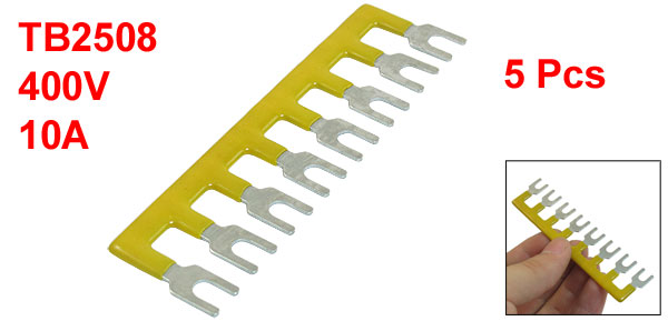 5 Pcs Fork Type 8 Postions Terminal Strip Block Yellow 400V 10A