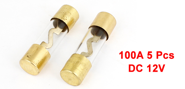 Product Name AGU Fuse Type Glass Tube Rating Current 100A Voltage DC 12V Size 3.7 x 0.9cm/1.5'' x 0.4'' (L*D) Material Glass, Alloy Color Gold Tone, Clear Net Weight 37g Package Content 5 x AGU Glass Fuse - Reviews