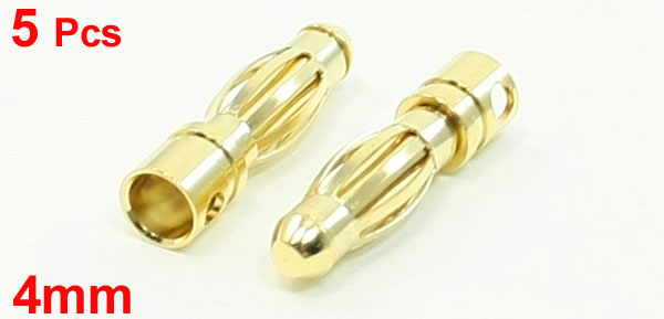 5 Pcs Gold Tone Metal Banana Bullet Plug Male Connector 4mm