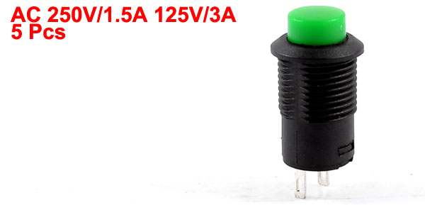 5 Pcs Green Black Self Locking SPST Round Rocker Switches AC 250V/1.5A 125V/3A