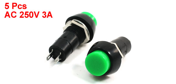 Item Name Panel Mount Push Button Switch Type Latching, SPST Voltage 250V Current 3A Button Color Green Mounting Thread Dia 12mm/ 0.47" Button Dia. 12mm / 0.47" Terminals Pitch 4mm / 0.16" Size 1.8 x 3.9cm / 0.7" x 1.5" (D x L) Material Plastic and Metal Weight 24g Package Content 5 x Panel Mount Push Button Switch - Reviews