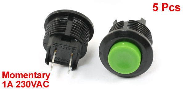 5 Pcs Green Flat Head 2 Pin SPST Momentary Push Button Switch