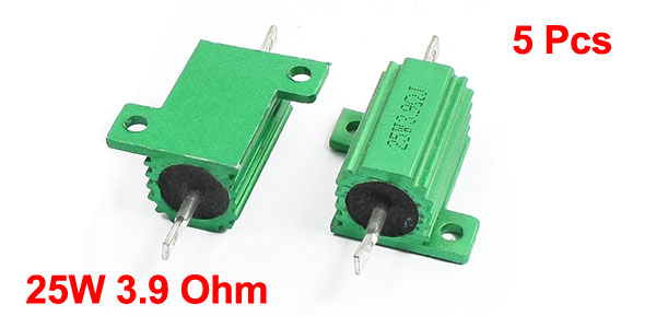 5 Pcs Green Heatsink Aluminum Housed 25Watt 3.9Ohm Wirewound Resistors