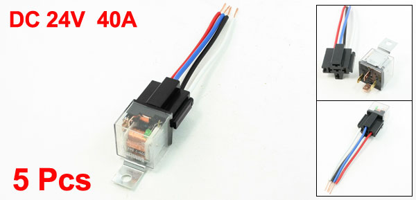 Wire Socket Size 3.3 x 2.8 x 2.8cm/1.3" x 1.1" x 1.1'" (L*W*T) Cable Length 11.5cm/4.5" Mounting Hole Dia 6.5mm/0.26" External Material Metal, Plastic, Electric Parts Main Color Black, Clear Net Weight 282g Package Content 5 x Relay