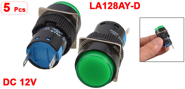 5 Pcs Green Round Cap 2 Pins Fault Signal Lamp Indicator Light DC 12V
