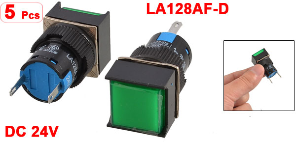 Product Name Indicator Light Model No. LA128AF-D Working Voltage DC 24V Light Color Green Shell Color Black, Green, Blue Terminals Quantity 2 Pins Mounting Hole Diameter 16mm / 0.63" Overall Size (Approx) 18 x 18 x 40mm/ 0.71" x 0.71" x 1.6" (D*H) Weight 35g Package Content 5 Pcs x Indicator Light - Reviews