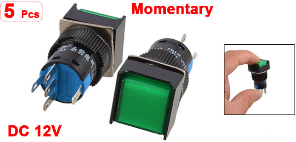 5 Pcs Green Square Cap DC 12V Light 1P2T 5 Pins Push Button Switch