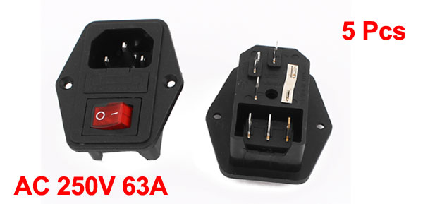 5 Pcs IEC320 C14 Red Button Rocker Switch Connector Plug 250V 63A
