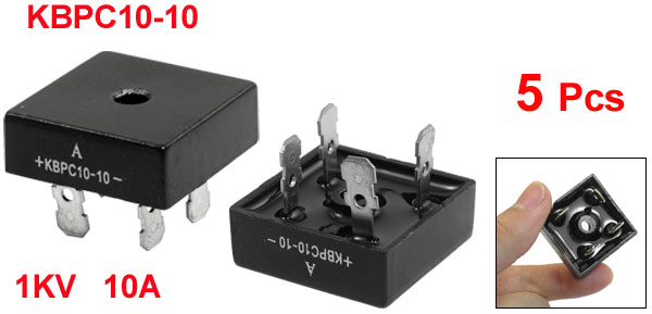 5 Pcs KBPC10-10 1K Volt 10A Single Phase Bridge Rectifier Half-Wave Black