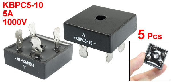 5 Pcs KBPC5-10 Metal Case Half Wave Diode Bridge Rectifier Black