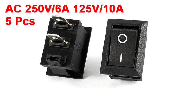 5 Pcs KCD1-101 SPST ON/OFF AC 250V/6A 125V/10A Power Rocker Switches Black