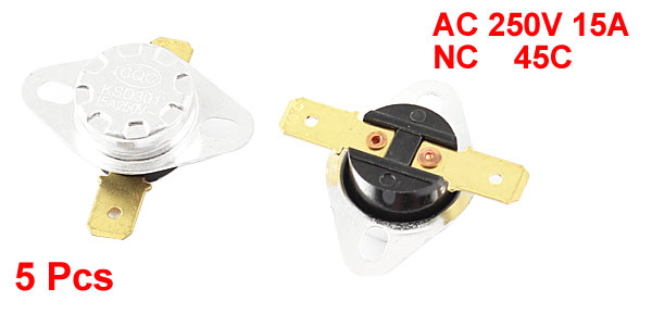 5 Pcs KSD301 45C NC Temperature Controller Switch Thermostat AC 250V 15A