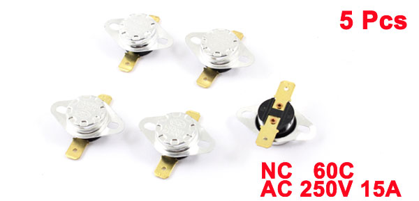 5 Pcs KSD301 60C NC Temperature Controller Switch Thermostat AC 250V 15A