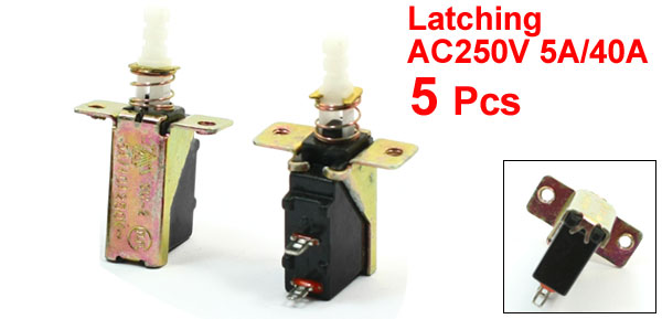5 Pcs Latching SPST Plastic Push Button Power Switch AC250V 5A/40A