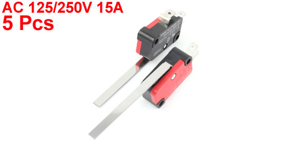 Main Color Black, Red, Silver Tone Brand DMiotech Lever Length 53mm / 2" Country of Manufacture CHINA Actuator Type Long Straight Hinge Lever Model V-153-1C25 Material Plastic, Metal Contact Type SPDT 1NO 1NC Product Name Micro limit Switch Net Weight 36g Package Content 5 Pcs x Micro Switch Main Body Size 28 x 10 x 15mm / 1.1" x 0.4" x 0.6" (L*W*H) Rating 15A 125 250VAC Pin Length 9mm / 3.5" - Reviews