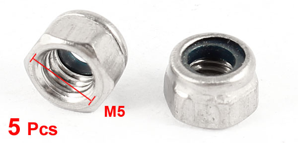 Product Name Nylon Insert Lock Nut Thread Dia M5 Total Size 7.7 x 7.7 x 5mm/0.3" x 0.3" x 0.2"(L*W*H) Materials Stainless Steel Color Silver Tone Net Weight 6g Package Content 5 x Nylon Insert Lock Nut - Reviews
