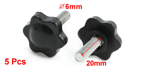 5 Pcs M6x20mm Thread 25mm Diameter Antislip Grip Star Shaped Head Clamping Knob