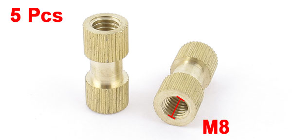 5 Pcs M8 Thread Solid Brass Embedded Injection Knurled Thumb Nut 25mm