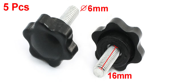Product Name Clamping Knob Type Screw On Head Diameter 22mm / 0.9" Thread Length 16mm /0.6“ Thread Diameter 6mm / 0.24" Total Height 30mm / 1.2" Material Metal, Plastic Color Silver Tone, Black Weight 36g Package Content 5 x Clamping Knob - Reviews