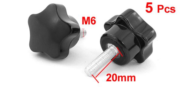 5 Pcs Machine Tool M6 x 20 Male Thread 32mm Dia Bakelite Knobs Handle Black