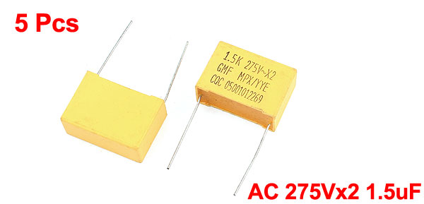 5 Pcs Metalized Polypropylene Film Safety Capacitor AC 275Vx2 1.5uF 10%