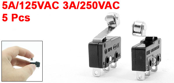 5 Pcs Micro Limit Switch Metal Roller Arm Subminiature SPDT Snap Action LOT