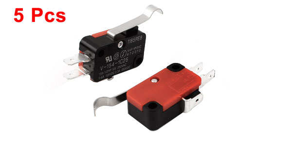 5 Pcs Mini Micro R Hooked Lever Limit Switch SPDT Normally Open/Close V-154-1C25