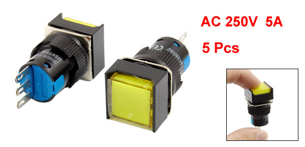 5 Pcs Momentary 1NO 1NC Yellow Squared Push Button Switch AC 250V 5A