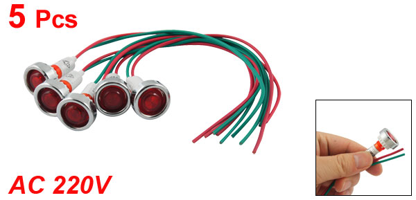 Product Name Indicator Light Working Voltage AC 220V Light Source Neon Lamp Light Color Red Cable Length 19cm / 7.5" Overall Size 22.5 x 2cm / 8.9" x 0.79"(L*Max.D) Weight 27g Package Content 5 x Indicator Light - Reviews