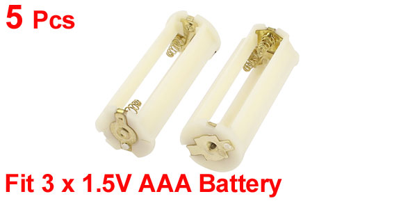Details5 Pcs Off White Cylinder Battery Holder Adapter for 3x1.5V AAA Batteries  Product Name 3 x AAA Battery Holder Fit for 3 x 1.5V AAA Battery(Not Included Here) Material Plastic, Metal Color Off White Size 52 x 20mm/ 2" x 0.8"(L*D) Weight 27g Package Content 5 Pcs x Battery Holder