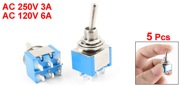 5 Pcs ON-ON 2 Way DPDT 6 Pin Latching Toggle Switch AC250V/3A AC120V/6A