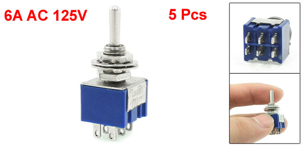 5 Pcs ON-ON 3-Terminals Double Pole Dual Throw Toggle Switch 6A 125VAC