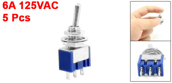 Product Name Toggle Switch Type DPDT (ON/ON) Position 2 Mounting Hole Diamter 5.8mm / 0.23" Voltage & Current 6A AC 125V Main Body Size 15 x 13 x 8mm / 0.6" x 0.5" x 0.3"(L*W*H) Overall Height 35mm / 1.4" Material Metal & Resin Color As Picture Shown Weight 25g Package Content 5 Pcs x Toggle Switch - Reviews