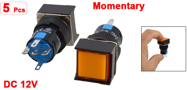 5 Pcs Orange Square Cap DC 12V Light 1P2T 5 Pins Push Button Switch