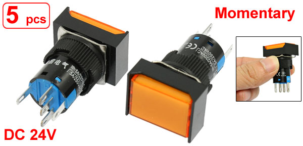 5 Pcs Panel Mount Momentary Orange Lamp Rectangular Push Button Switch DC 24V