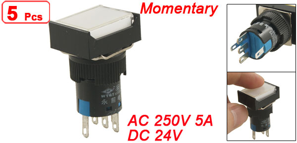 5 Pcs Panel Mount Momentary White Lamp Rectangular Push Button Switch DC 24V