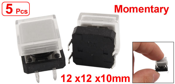 Product Name Tactile Switch Action Type Momentary Dimension 12 x 12 x 10mm / 0.47" x 0.47" x 0.4" (L*W*H) Cap Size 12 x 12mm / 0.47" x 0.47"(L * W) Pin Pitch 13 x 4mm / 0.5" x 0.157"(L * W) Pin Length 4mm / 0.16" Material Plastic, Metal, Electric Parts Main Color Black, Gray Net Weight 7g Package Content 5 x Momentary Tactile Switch - Reviews