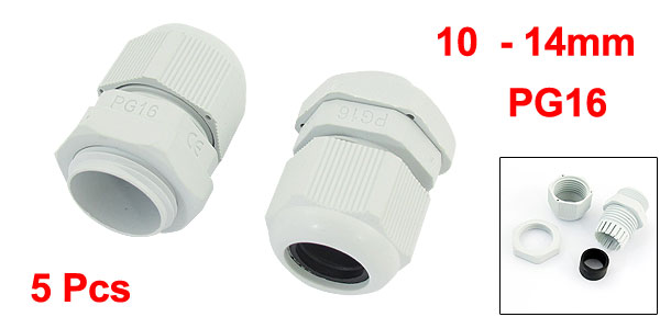 5 PCS PG16 White Plastic Glands Connectors for 10mm to 14mm Cable