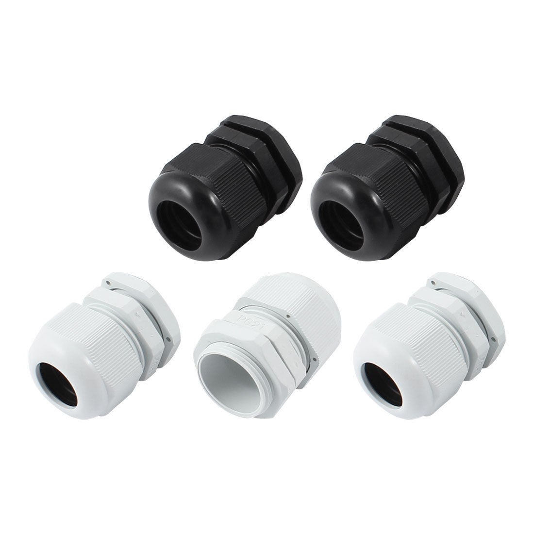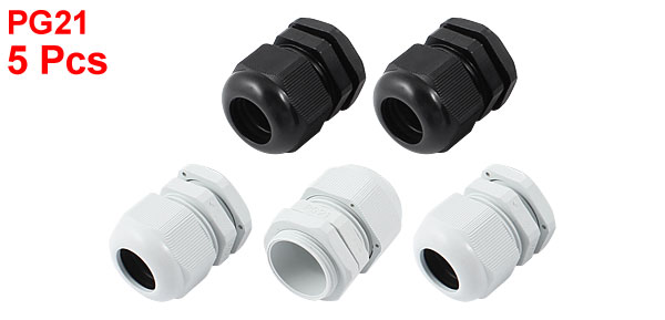 5 Pcs PG21 White Black Plastic Waterproof Cables Glands Joints
