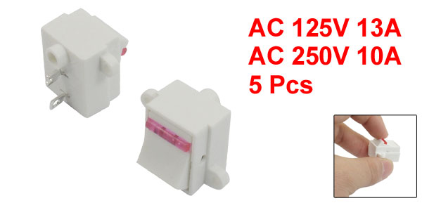 5 Pcs Pink White 2 Pin SPST On/Off Rocker Switch AC 125V/13A 250V/10A