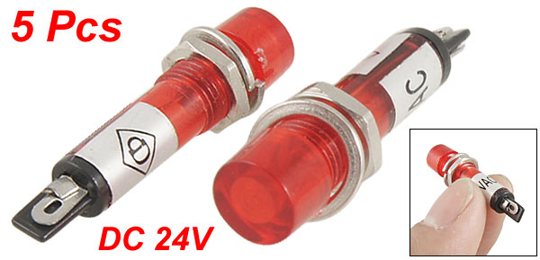 5 Pcs Plastic Case Red Lamp Signal Indicator Pilot Light DC 24V Agggm