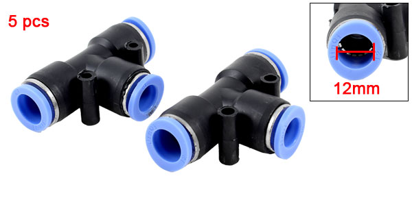 5 Pcs Pneumatic 12mm to 12mm Push In Connector Tee Shaped Quick Fittings
