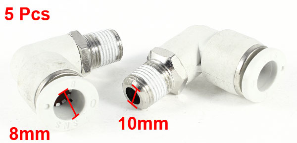 5 Pcs Pneumatic 8mm to 10mm Male Thread 90 Degree Elbow Quick Fittings