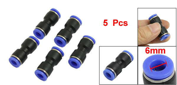 Details5 Pcs Quick Connector Straight One Touch Push In Fittings 6mm to 6mm  Product Name Quick Fittings Type 6mm to 6mm(Straight) Material Plastic Dimension (Approx) 32 x 13mm/ 1.3" x 0.51" (L*D) Color Black, Blue Weight 18g Package Content 5 x Quick Fittings