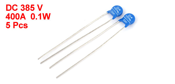 Prodcut Name Voltage Dependent Resistor Model S05K300 DC Voltage DC 385 V 8/20us Current 400A Max.Power 0.1W Body Size 5.5 x 3.5mm/0.22'' x 0.14'' (D*H) Lead Size 0.5 x 40mm/0.02'' x 1.6'' (D*L) Lead Spacing 5mm/0.2'' Weight 2g Package Content 5 x Voltage Dependent Resistor - Reviews