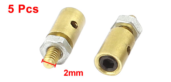 Main Color Gold Tone Net Weight 5g Fit Cable Dia. 1mm/0.04" Country of Manufacture CHINA Package Content 5 x RC Model Rod Connector Joint Material Metal Total Size 11 x 4mm/0.4" x 0.16"(L*D) Thread Diameter 2mm/0.08" - Reviews