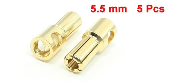 5 Pcs RC Model Li-Po Battery Male Banana Bullet Connector Plug 5.5mm