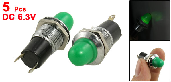 5 Pcs Recessed 2 Pins Green Pilot Light Signal Indicator Lamp DC 6.3V