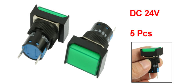 Details5 Pcs Rectangular Green Cap Indicator Light Accident Signal Lamp DC 24V  Product Name Indicator Light Model No. LA128AJ-D Working Voltage DC 24V Light Color Green Terminals 2 Pins Mounting Hole Diameter 16mm / 0.63" Overall Size 24 x 18 x 40mm/ 0.94" x 0.7" x 1.6" (L*W*T) Weight 38g Package Content 5 Pcs x Indicator Light